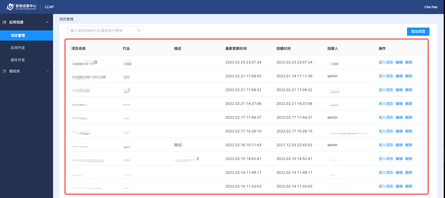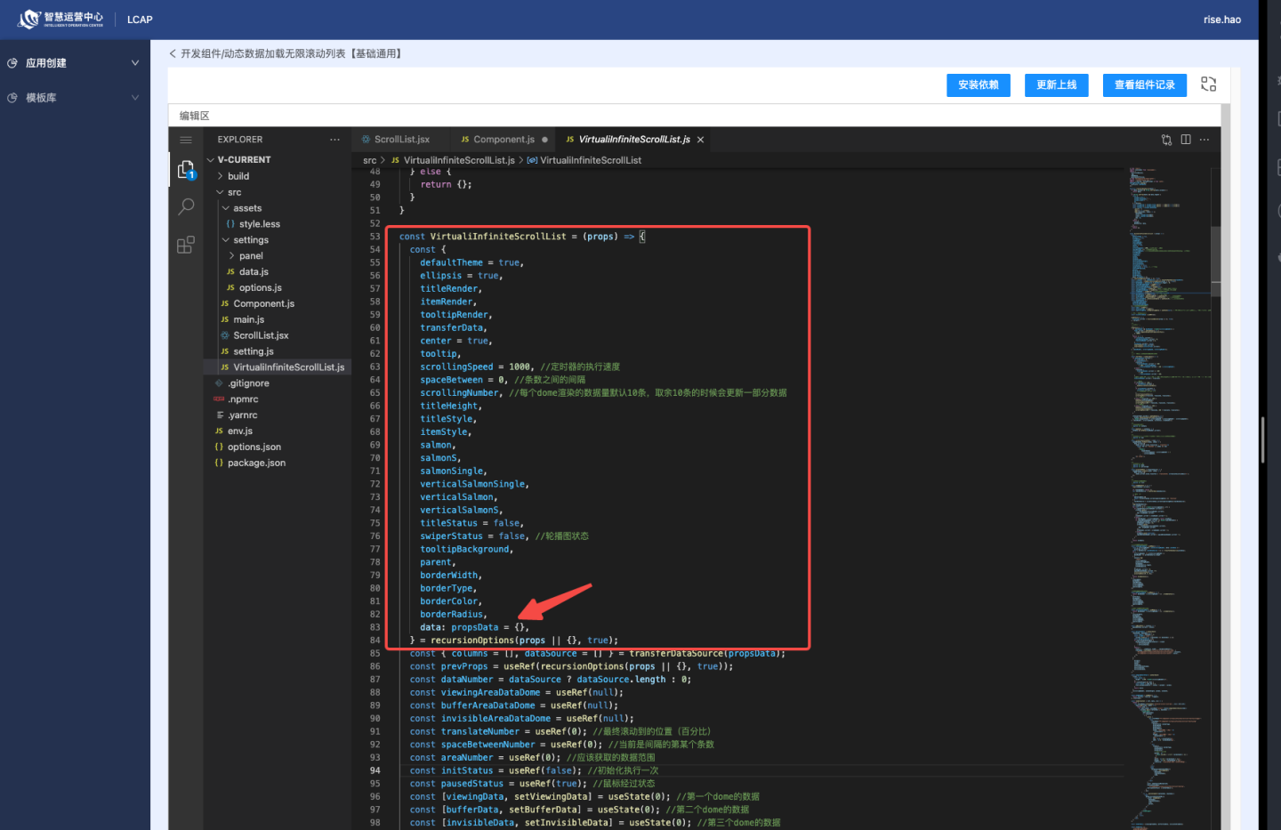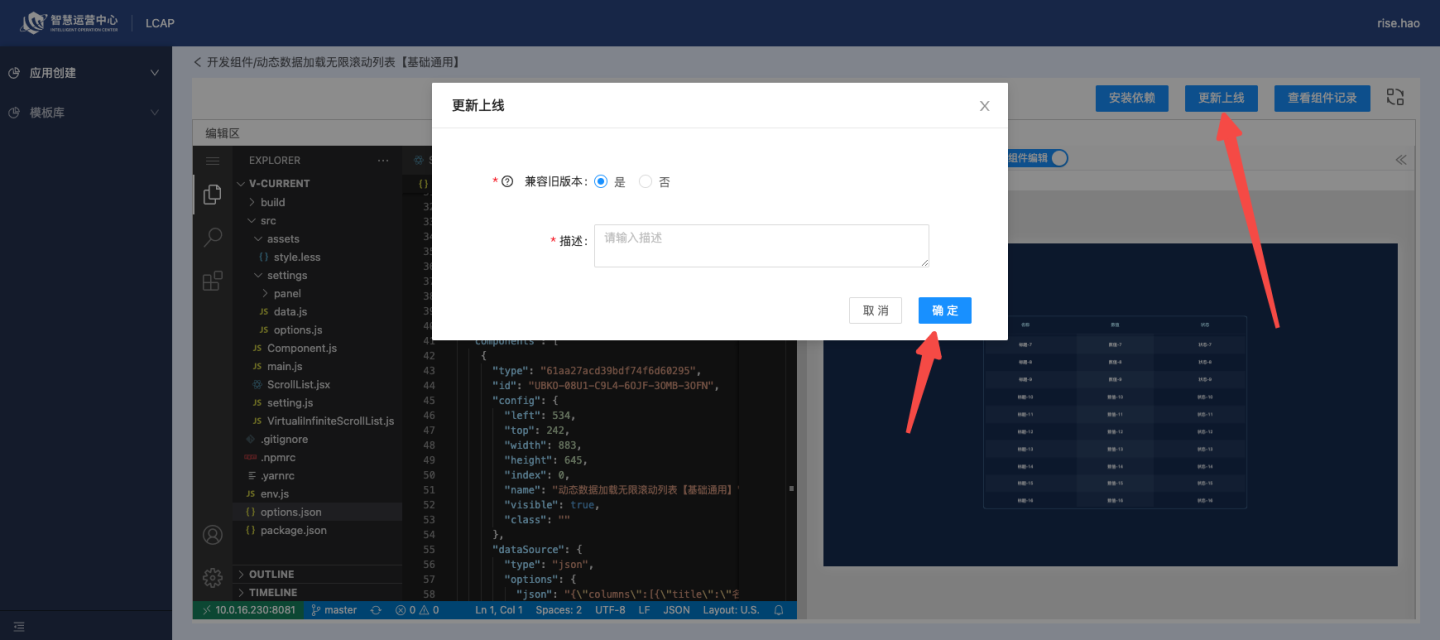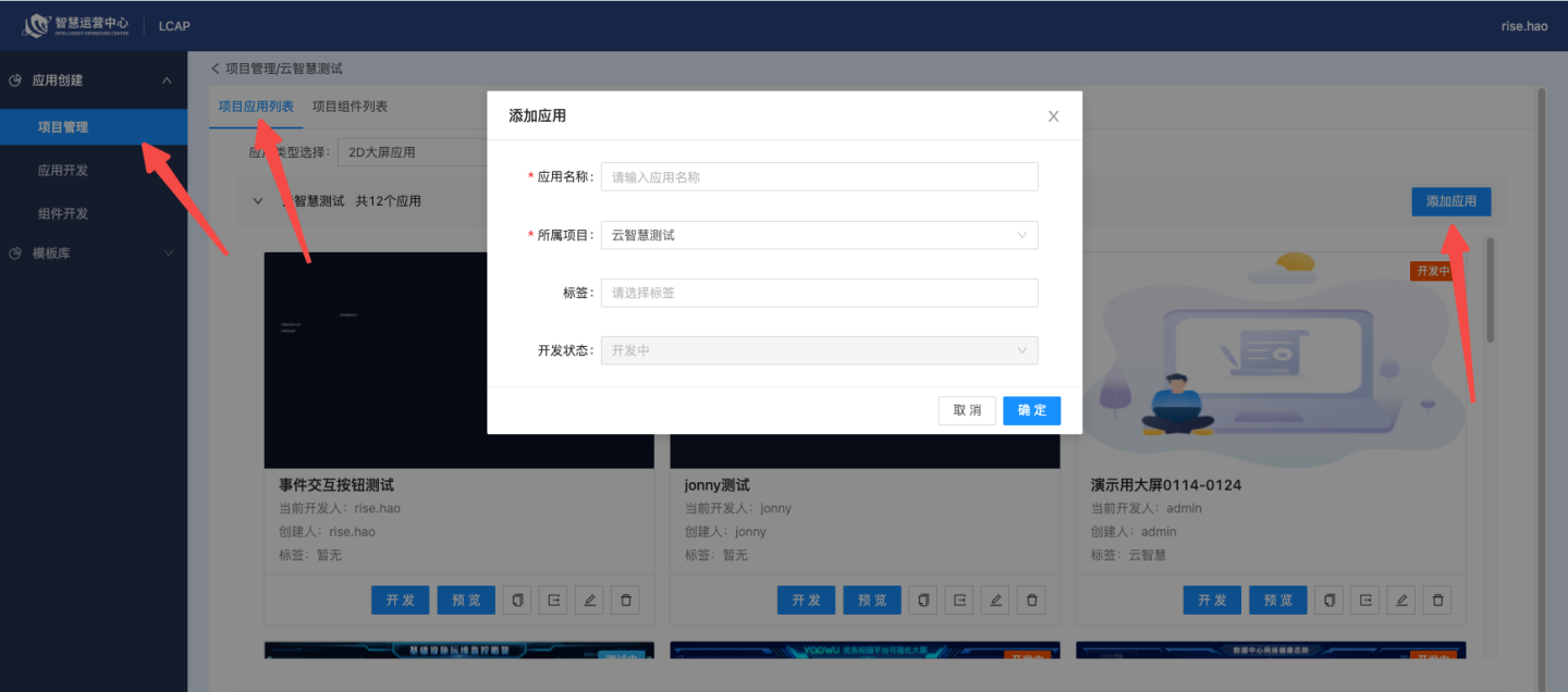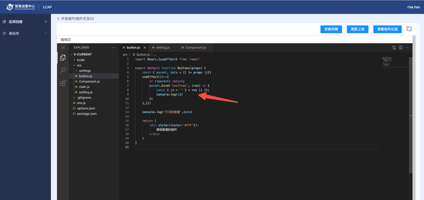 2. 项目组件开发,选择刚刚创建好的项目组件、点击开发组件