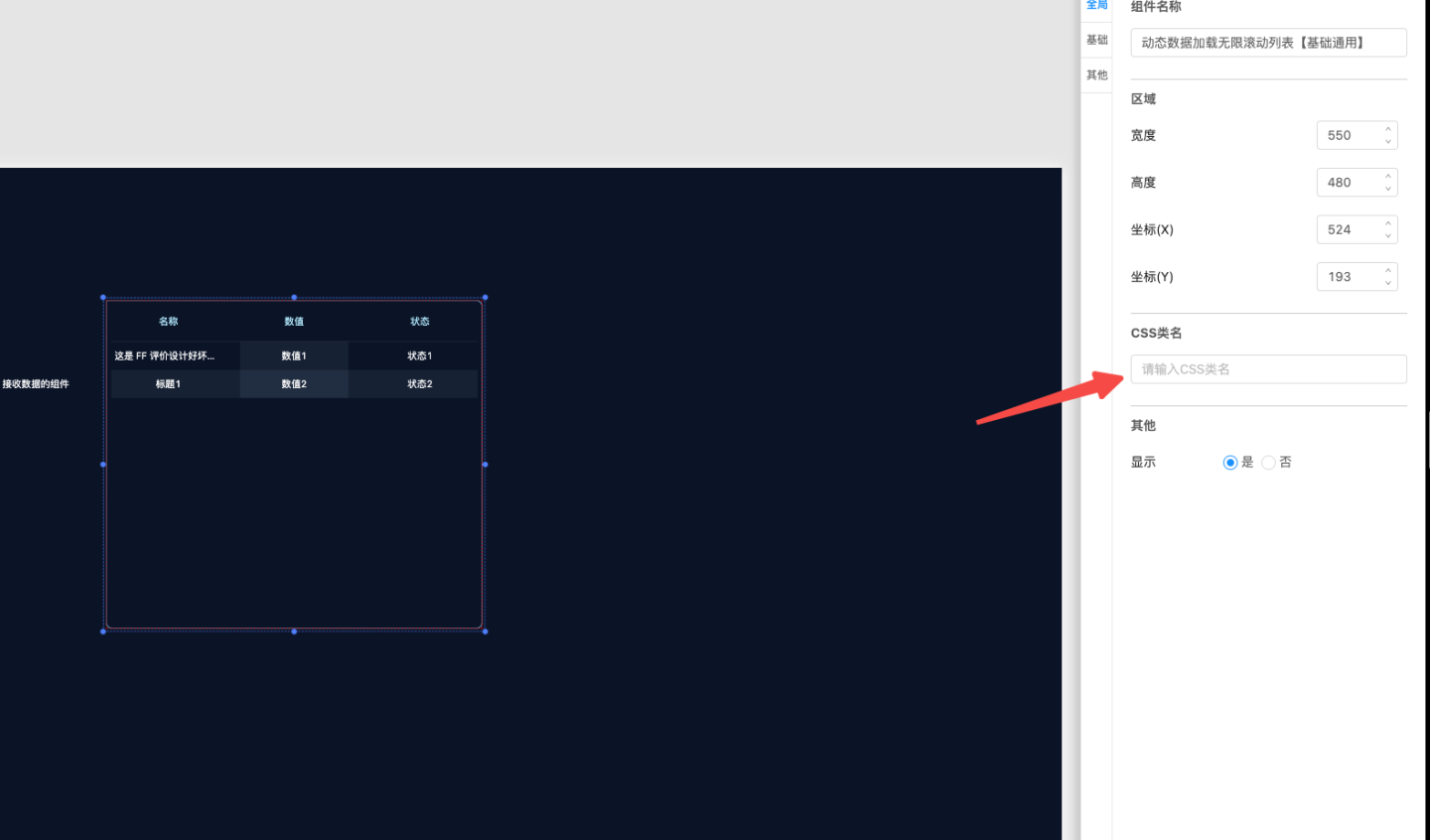 如果仅通过配置项无法满足当前组件与UI的要求,可自定义CSS,添加css名字(会添加到当前组件的最外层,并在全局样式内进行自定义)