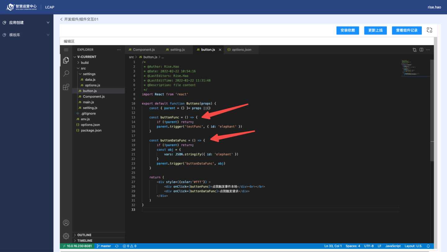 组件代码文件,仅支持原生 Javascript 进行开发,请参考开发组件。如使用 react 开发,请参考React 开发组件