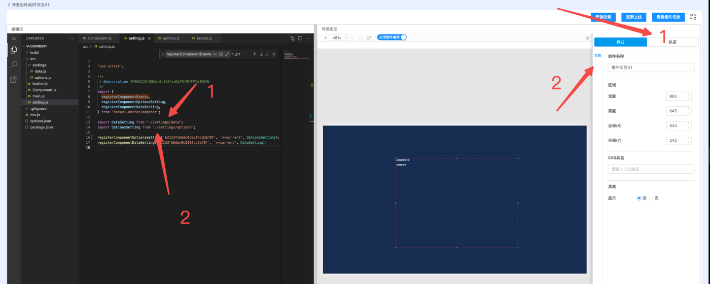 组件设置数据区域组件,需使用 react 开发,具体请参考增加组件数据配置