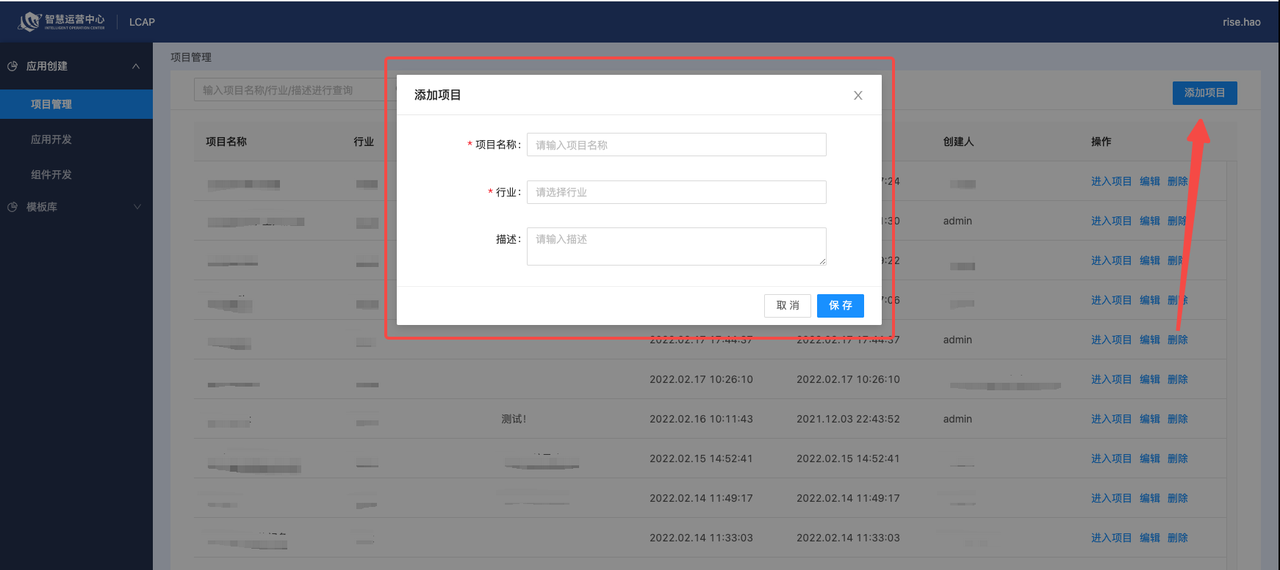 创建项目(整体项目名称)查看是否有当前正要做的项目