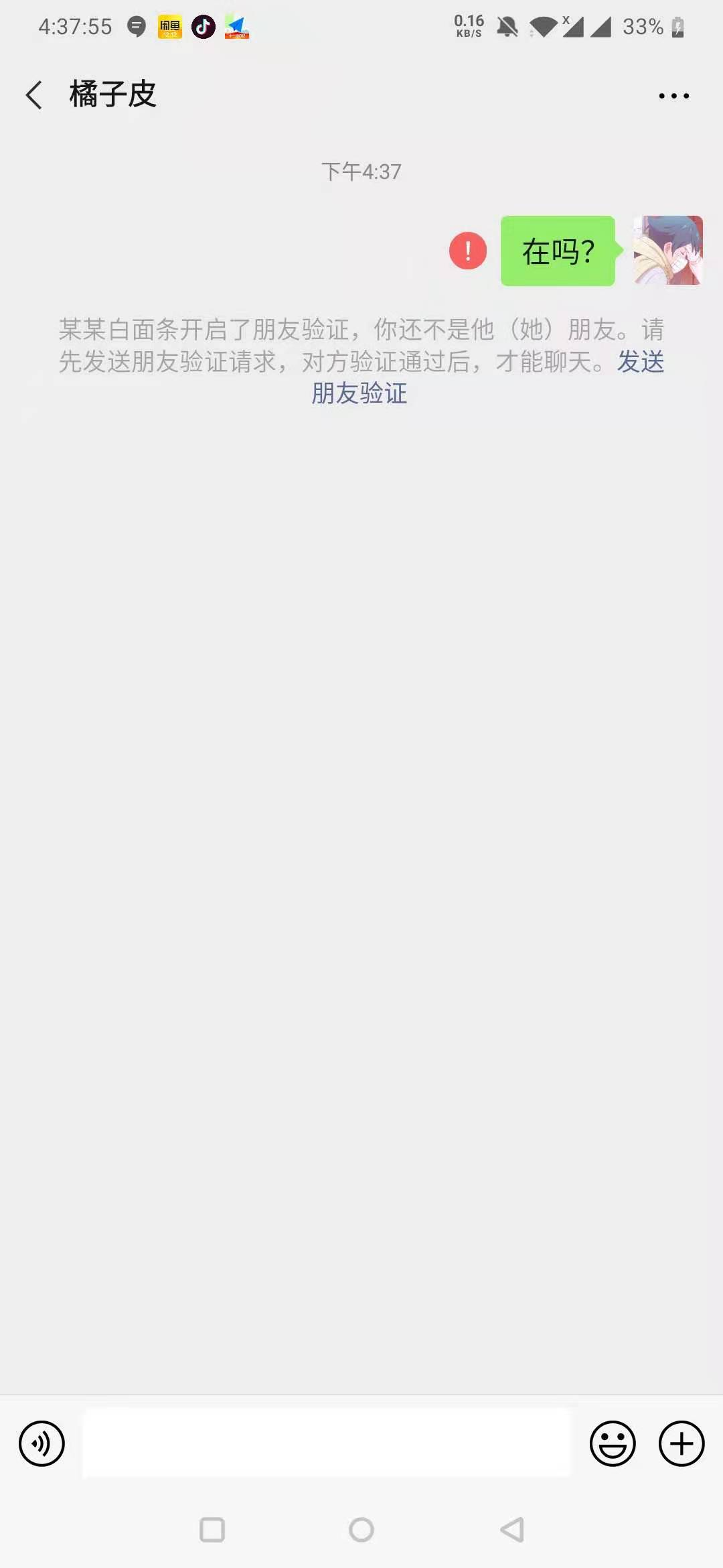 随着微信的使用时间越长,微信好友也越来越多,有些好友将你删除了你也不知道。当我们发消息的时候会出现下面扎心的一幕,然后默默将他删除