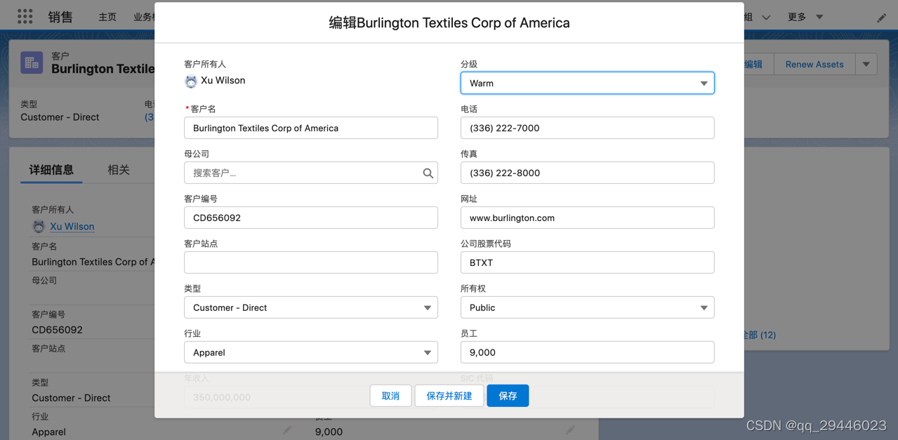 编辑和新建一条记录时,也是调用页面布局元数据,根据字段的数据类型加载出相应的控件。例如Date类型的字段要加载为日期控件,Lookup类型加载为查找控件,Picklist类型加载为列表选项控件。