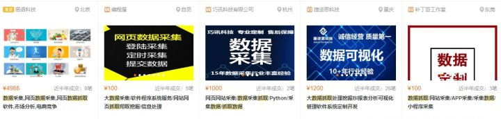 一般我们向甲方提供爬虫、数据分析、数据清洗这样的服务。(可以去猪八戒等外包平台)