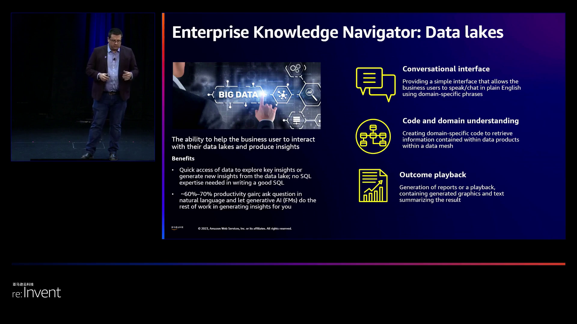 他们谈到了如何通过QuickSight轻松访问数据湖中的结构化数据洞察,而无需使用复杂的商业智能工具。