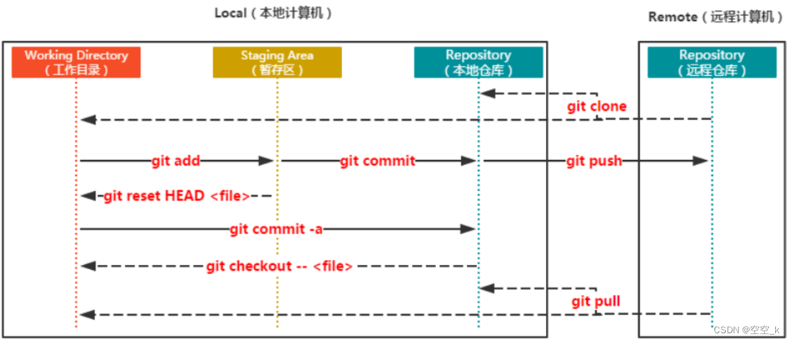 每个终端都是一个仓库,客户端并不只是提取最新版本的文件快照,而是把原始的代码仓库完整地镜像下来。每一次提取操作,实际上都是一次对代码仓库的完整备份。