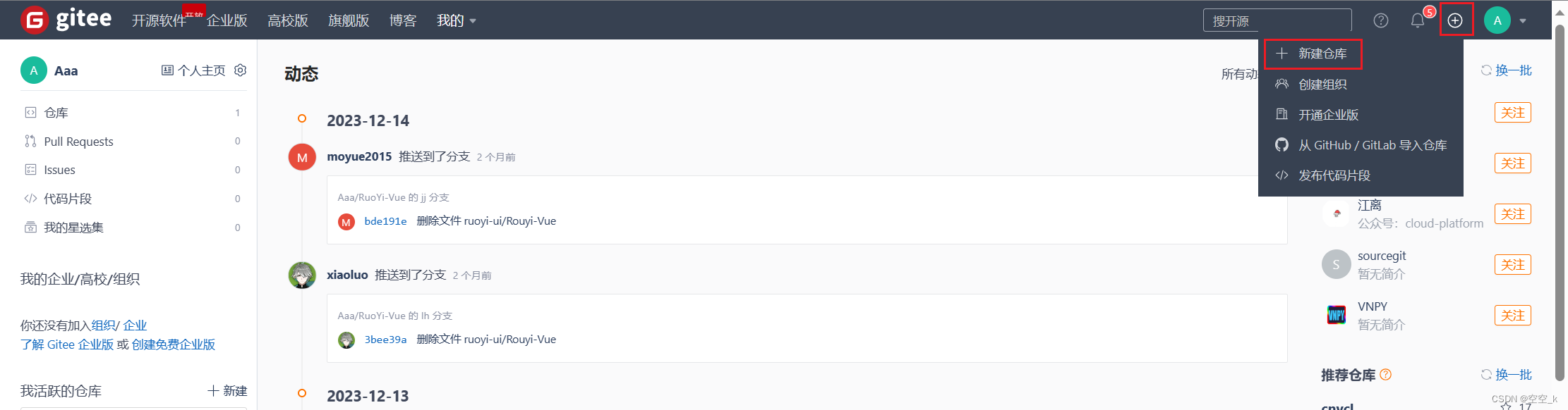 Gitee官方网站:Gitee - 基于 Git 的代码托管和研发协作平台