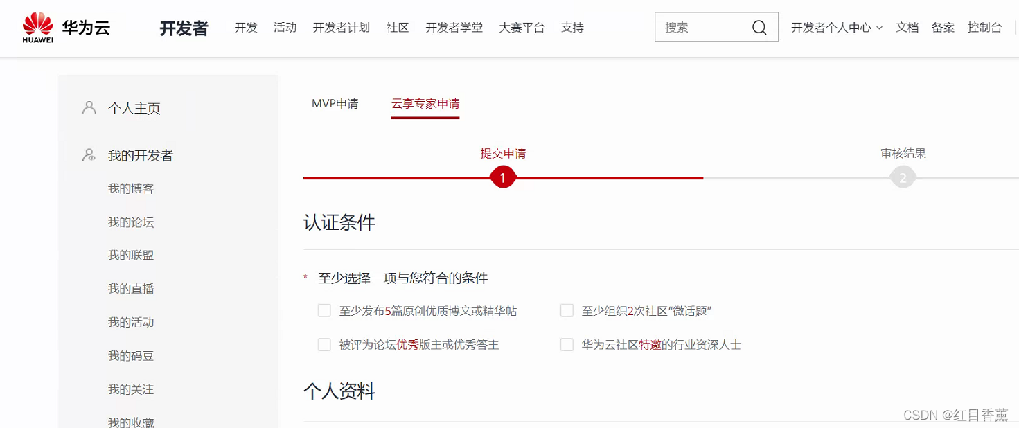 3.获得华为云MVP或云享专家的实名推荐;