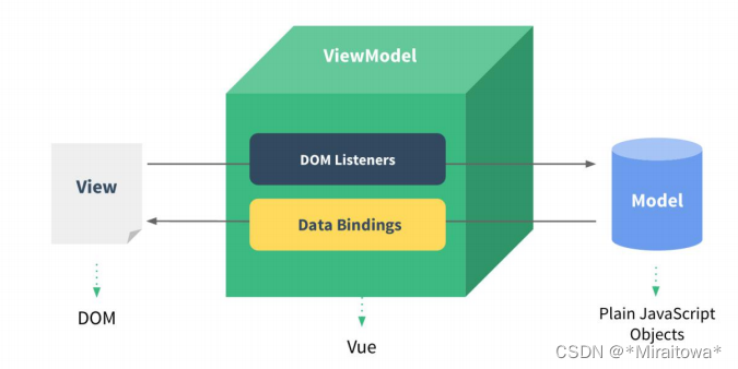 - VM:视图模型(ViewModel) : Vue 实例对象