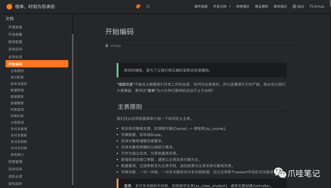 后端代码文档。http://www.orangeforms.com/development-doc/