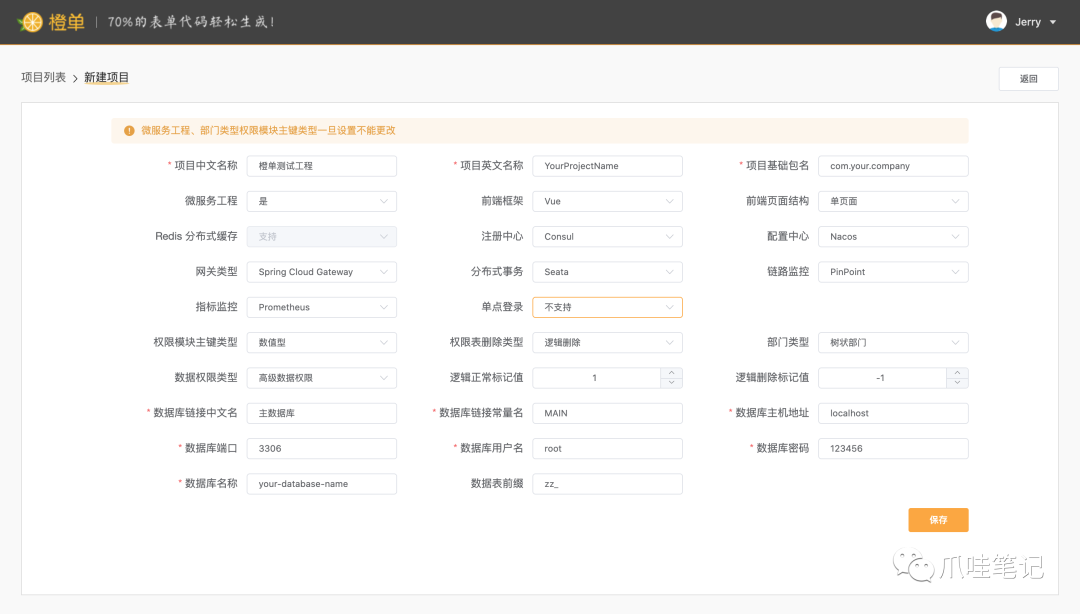 项目信息如您所愿,工程名称、目录结构、基础包名、common模块、代码注释中的@author信息等,在创建工程时即已配置,不会留有橙单的任何信息。因此无需二次修改,前后端直接编译运行即可。如编译期和运行时出现问题,那一定是我们的bug,在得到您反馈后,我们将及时修复。