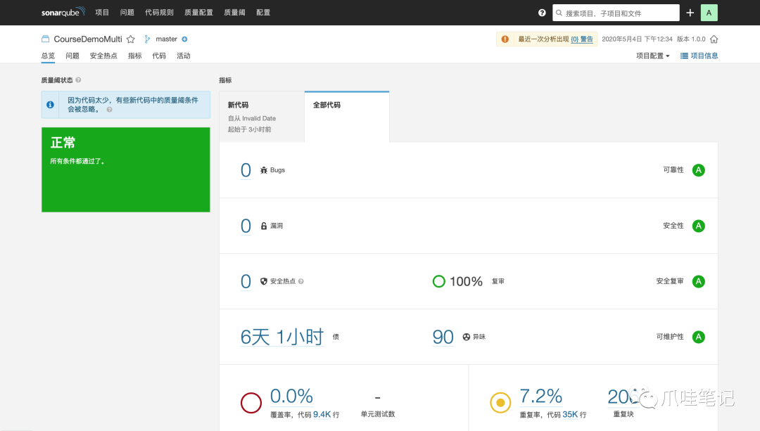 近乎于0的代码重复率,35%以上的注释覆盖率。