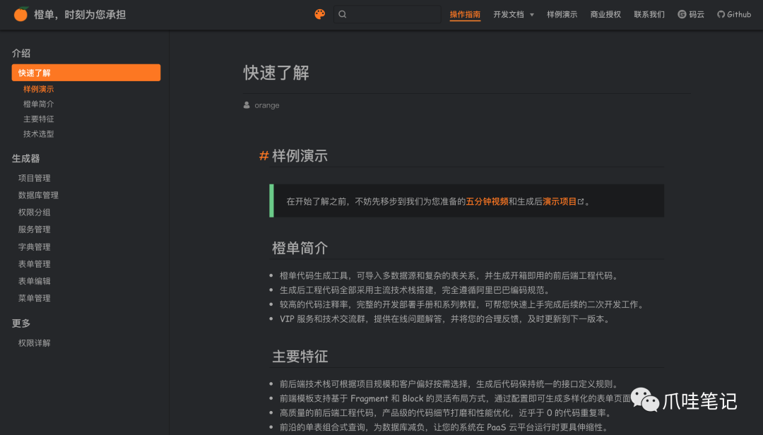 点击▲关注 “爪哇笔记” 给公众号标星置顶更多精彩 第一时间直达橙单简介橙单低代码生成器由知视科技团队研发,团队经过多年大型企业中台化改造项目的沉淀,不断总结经验教训,不断努力提升产...