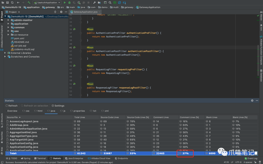Java代码覆盖率为37%。