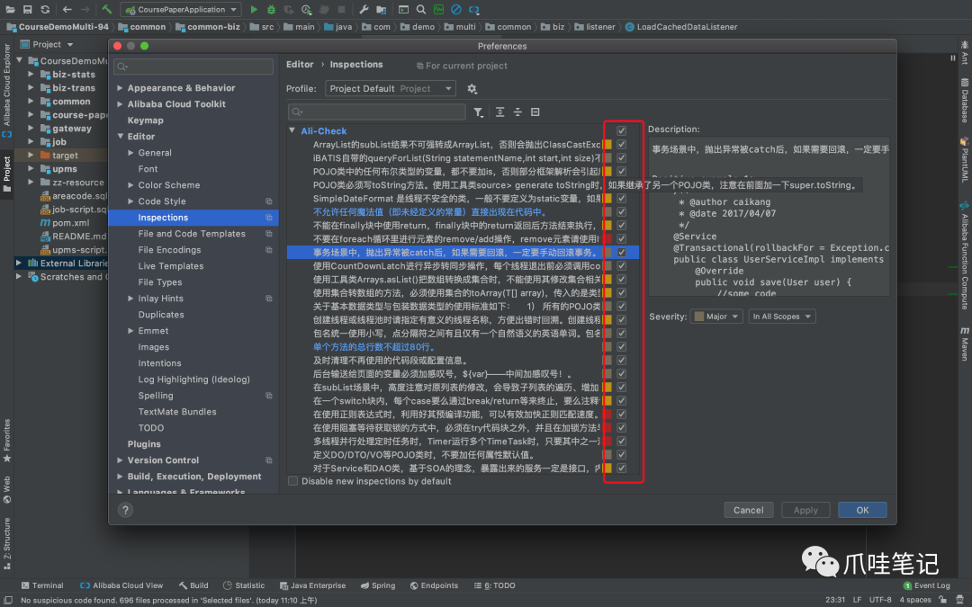 下载最新版本IDEA插件,同时打开所有审查条件。