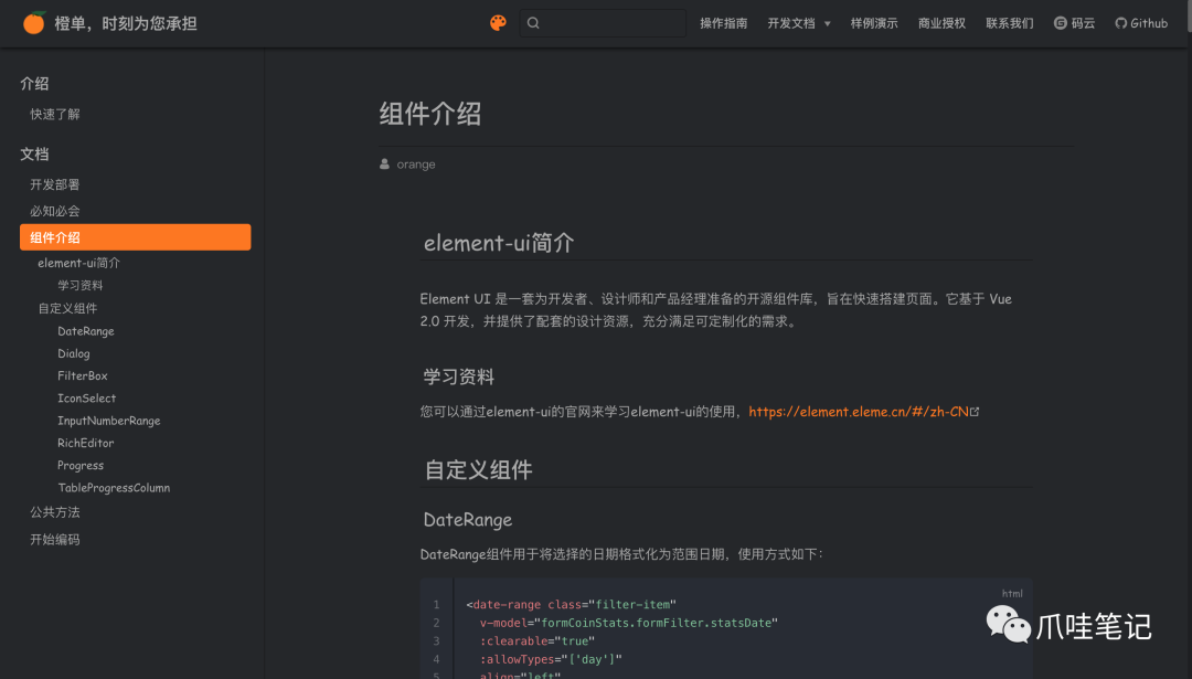 前端代码文档。http://www.orangeforms.com/development-vue/