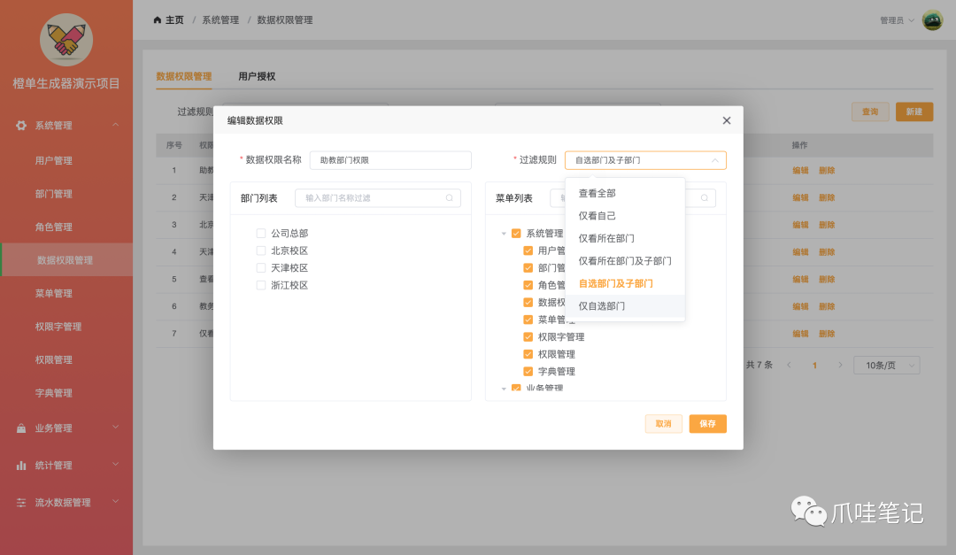 项目地址:gitee.com/orangeform/orange-admin