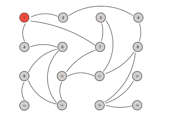 【步骤 1】如果有某一项信息需要在整个网络中所有节点中传播,那从信息源开始,选择一个固定的传播周期(譬如 1 秒),随机选择它相连接的 k 个节点(称为 Fan-Out)来传播消息。