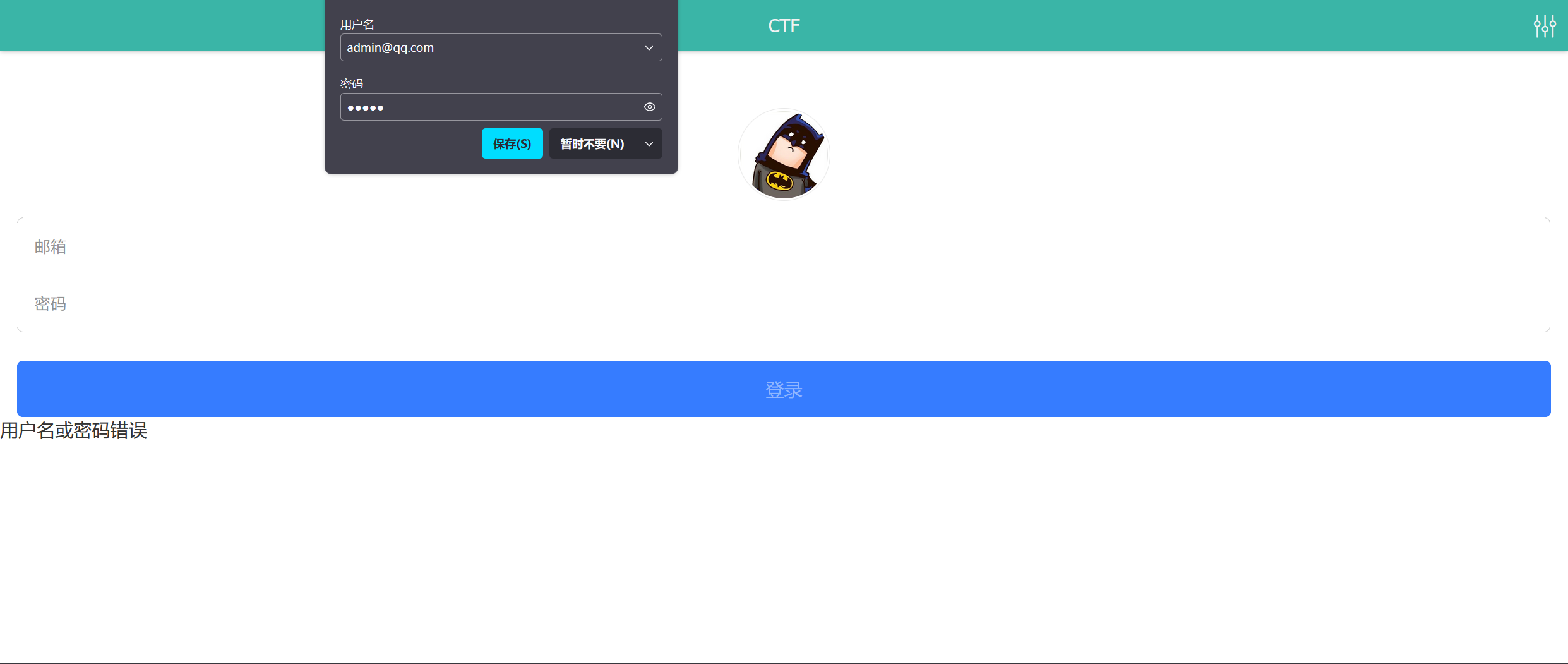 发现邮箱必须要加后缀,不能直接填admin,随便加一个也不行