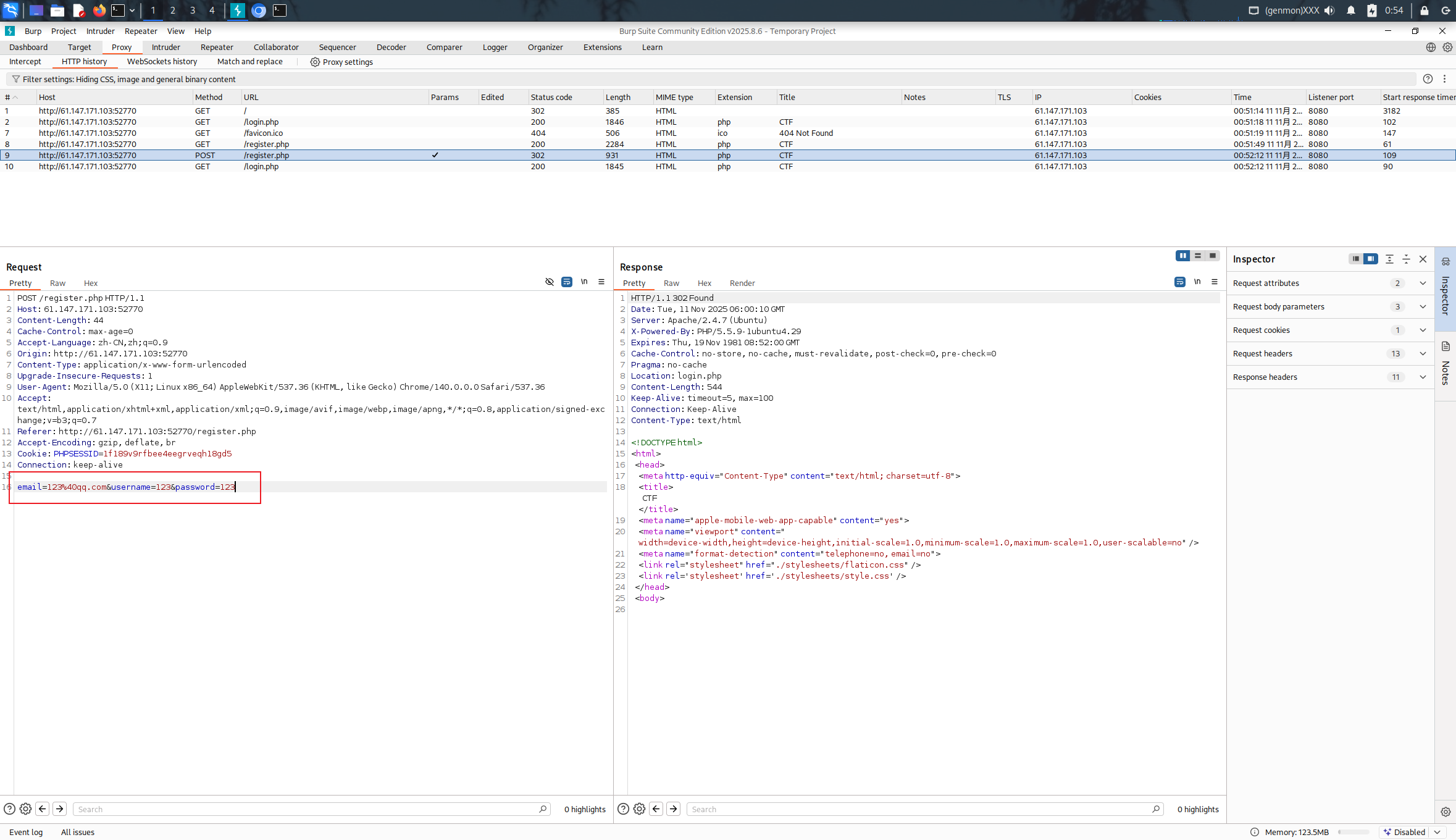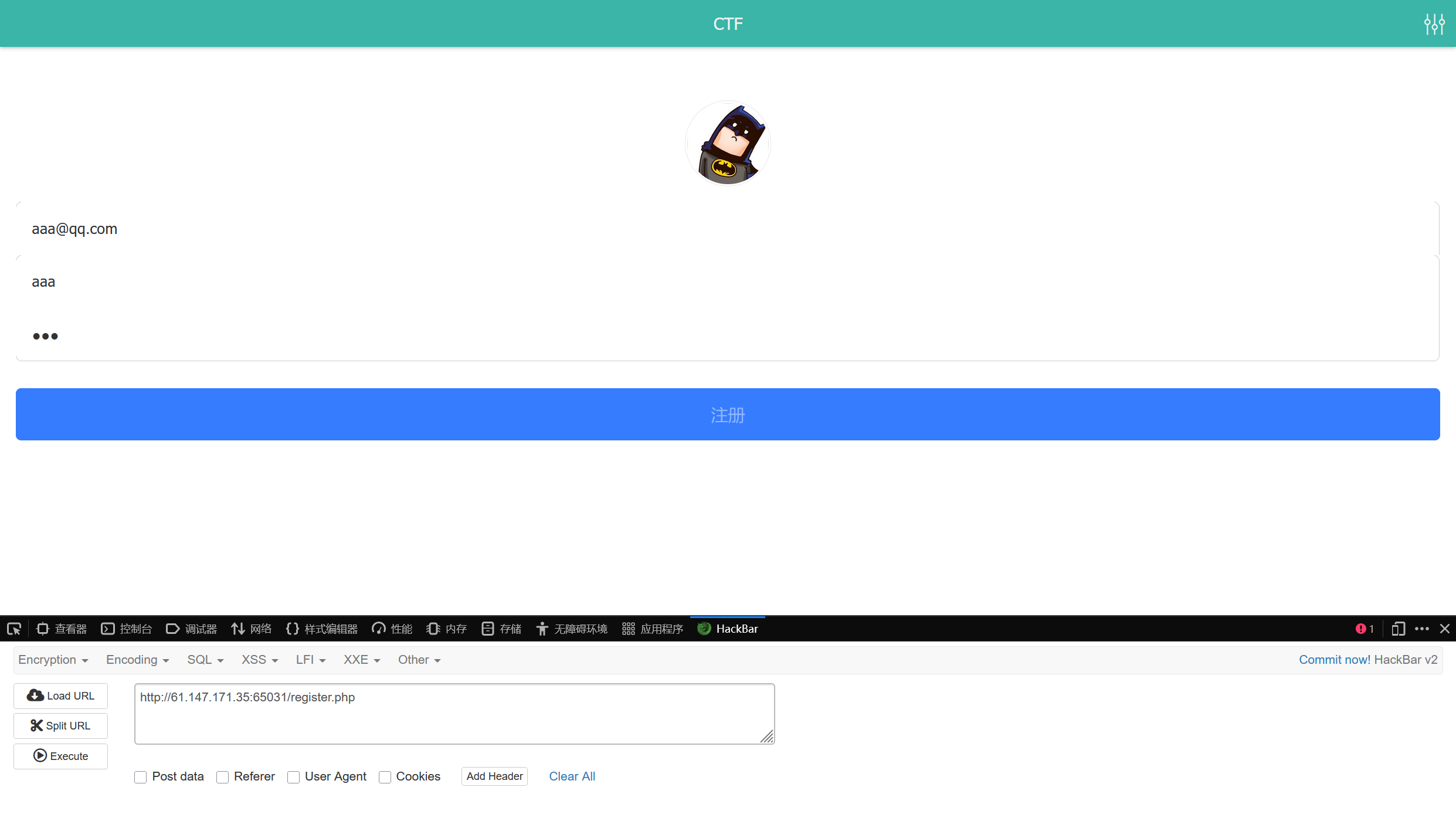 访问register.php并随便注册一个账号
