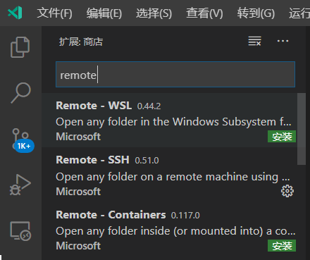 打开软件的扩展界面,搜索 Remote 开头的插件,也能看到这三个的不同远程开发插件。我们这里连接的是云主机,选择安装 Remote - SSH 插件安装即可。