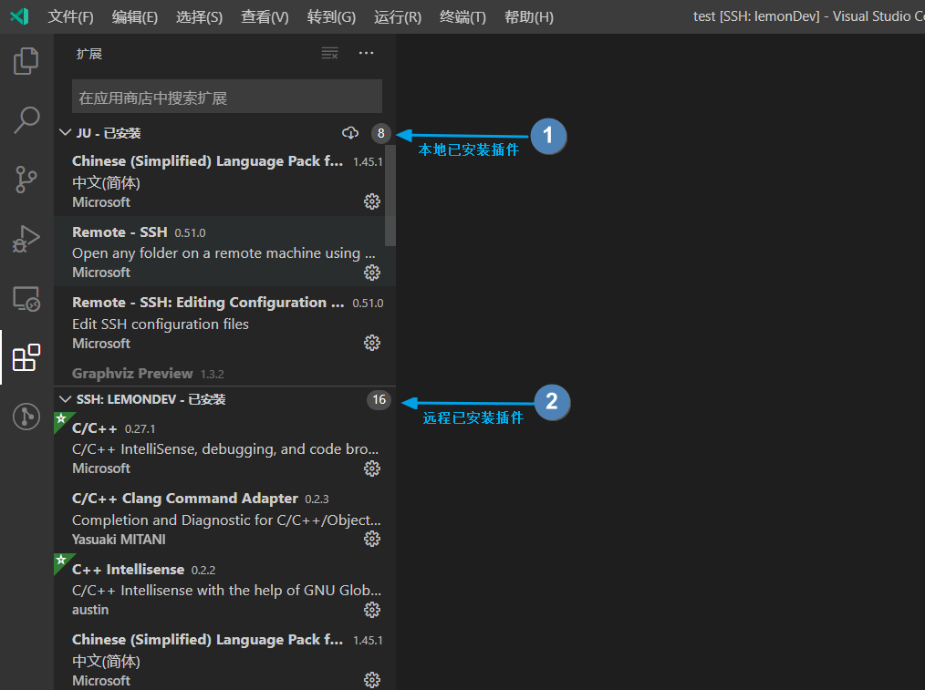 Remote - SSH - 通过使用 SSH 链接虚拟或者实体Linux主机。