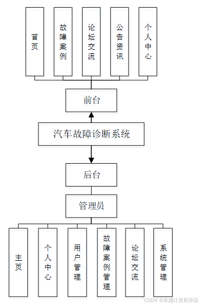这些功能的设计充分考虑了用户和管理员的实际需求,旨在打造一个高效、互动性强的汽车故障诊断平台。通过远程协作的方式,用户可以随时随地获取故障诊断信息,而管理员则能够高效地管理平台内容,确保系统的稳定运行。