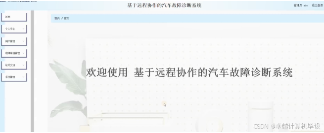 管理员登录进入系统可以查看首页,个人中心,用户管理,故障案例管理,论坛交流,系统管理等功能,并进行详细操作,如图4-6所示。