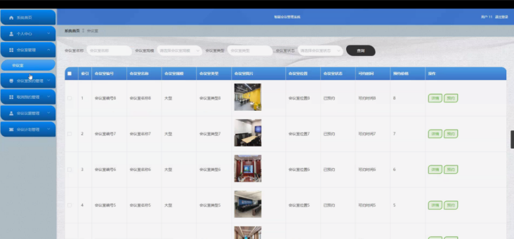 会议室预约管理:用户可以在线预约会议室,并查看预约状态。