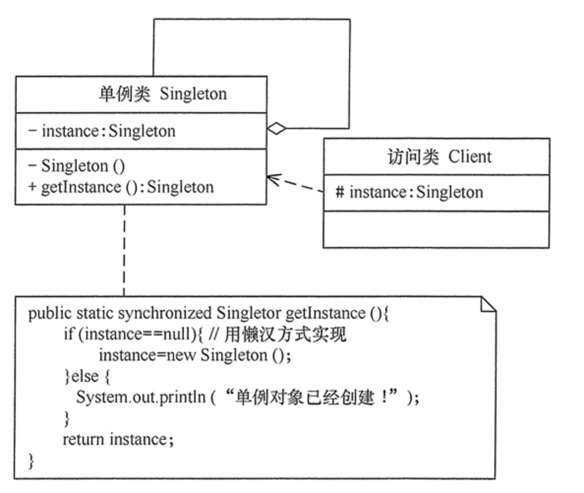 缺点:效率低下,每个线程在获取实例的时候,执行getInstance都需要进行同步,方法的同步效率太低,但是锁住的紧紧是那两代码,如果恰好友两个线程同时进入到了if判断语句中,那么其中一个会执行,另一个等待这个执行完毕之后去执行,那不就创建了两个实例了吗,这样就不能保证只有一个对象被创建。因此引入下面的双重检查