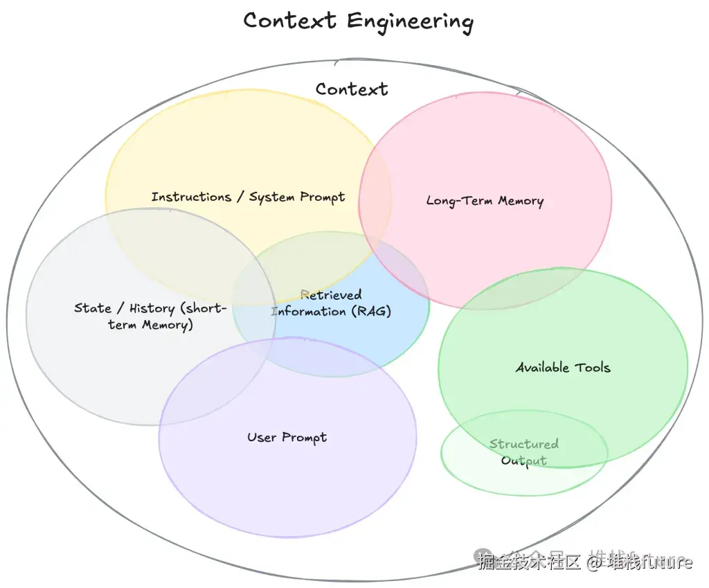在实际的 AI 智能体或 LLM 应用中,上下文由多种元素组成: