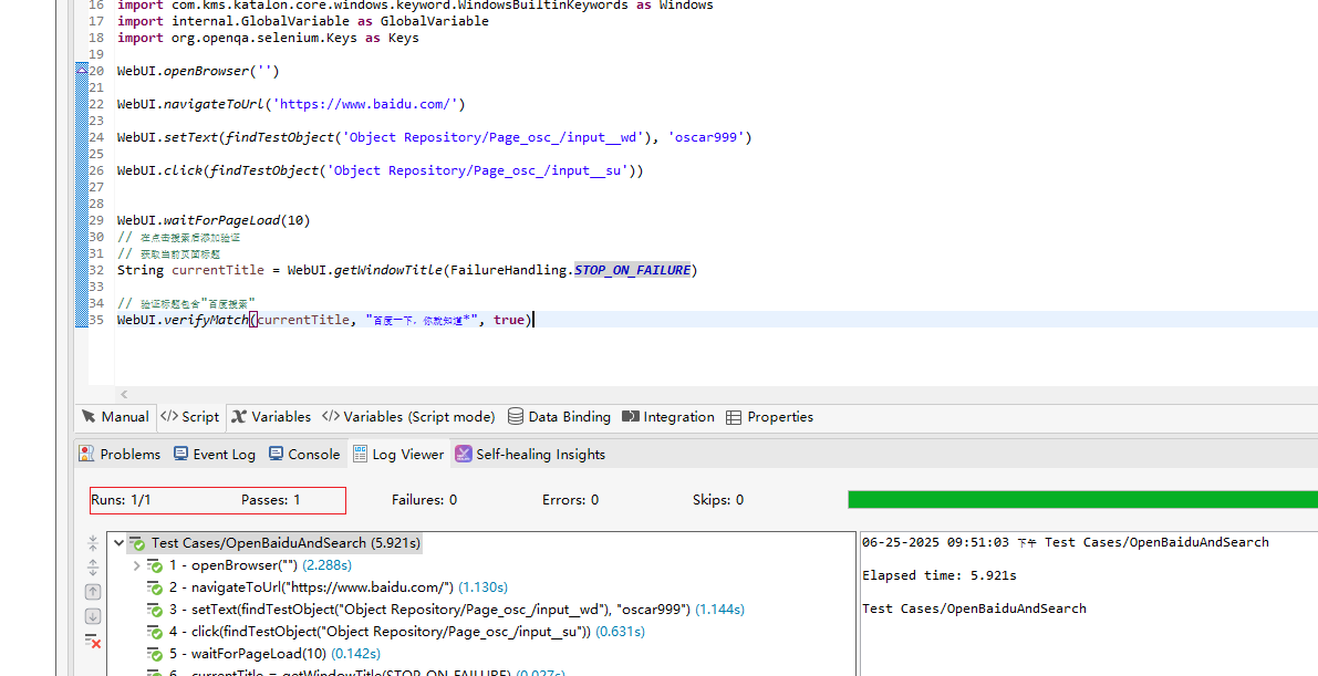 WebUI.verifyMatch(currentTitle, "百度一下,你就知道*", true)