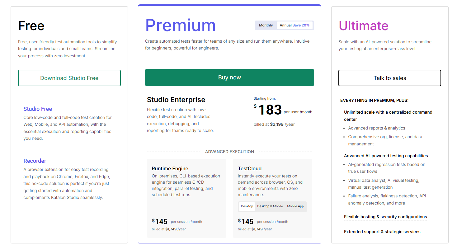 Katalon Studio 是一款功能强大的自动化测试工具,支持 Web、API、移动端(Android/iOS)和桌面应用测试。它集成了 Selenium 和 Appium 的核心功能,提供图形化操作界面和脚本编辑能力,适合测试新手和资深开发者。