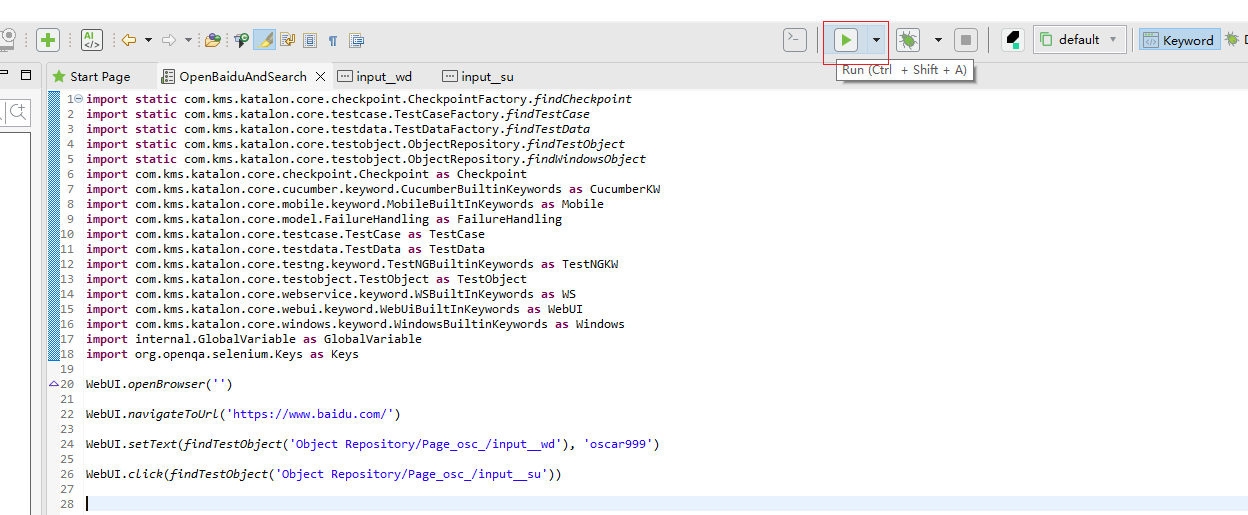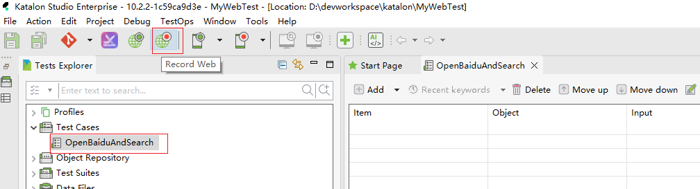 - 在项目中右键点击 Test Cases → New > Test Case,命名为 OpenBaiduAndSearch。