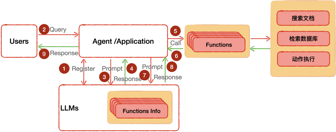 注:对于Function Calling技术而言,为了让大模型支持函数识别功能,因此对大模型参数进行了微调。