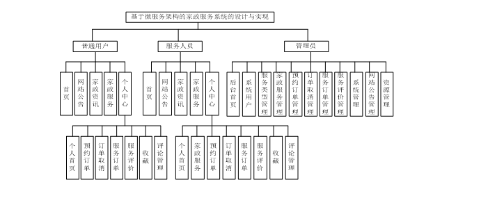 第四章:系统设计,主要对家政服务系统系统功能模块、数据库进行功能设计。