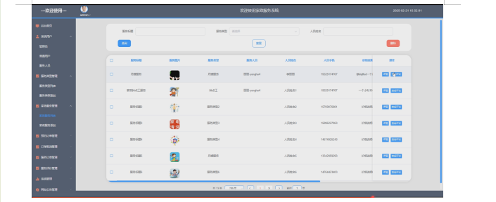 With the acceleration of social life pace and the continuous increase in people's demand for domestic services, a domestic service system based on microservice architecture has emerged. This system aims to modularize various aspects of home service through the design concept of microservices, achieving flexible expansion and efficient management of services.