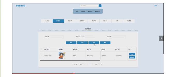 家政服务:普通用户可以查看系统中提供的各种家政家政服务,包括详细的服务内容、价格、时长等信息,帮助用户根据自身需求选择合适的服务。