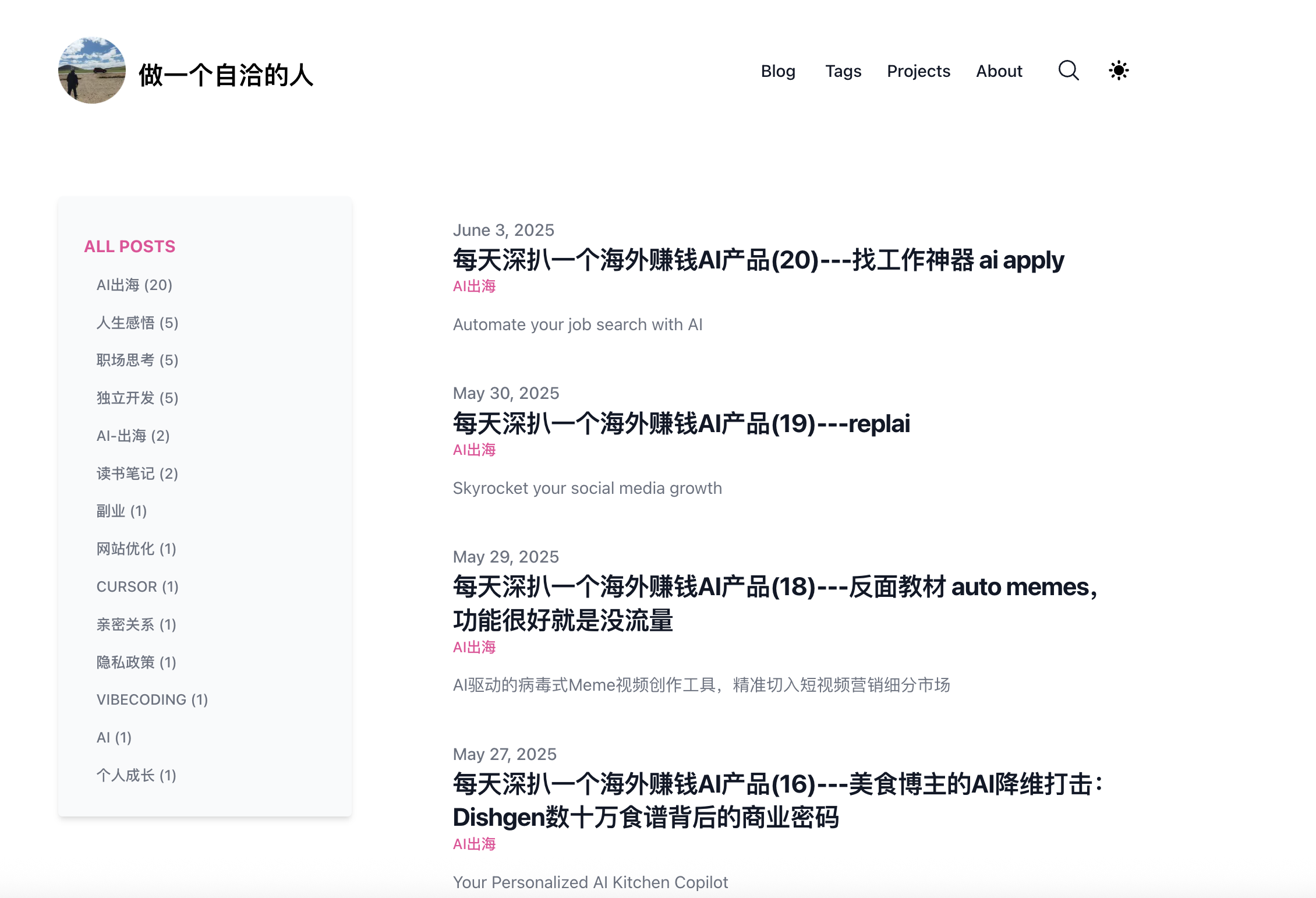 辣条(@GeorgePekingzcc)的博客是一个专注于技术产品出海、AI产品分析的独立博客。作为一名资深的独立开发者,他的文章充满了对行业的深度洞察和实战经验。