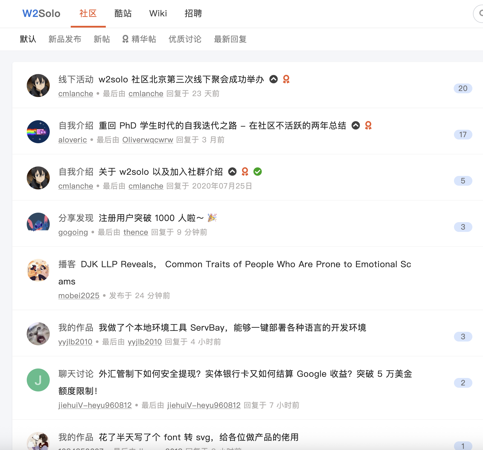 w2solo(way to solo,独立开发之路)是中国最活跃的独立开发者社区之一,自2018年10月创立以来,已发展成为拥有8000多名会员的大型社区。