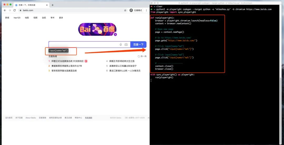 开篇就提到,使用Playwright无需写一行代码,我们只需手动操作浏览器,它会录制我们的操作,然后自动生成代码脚本。