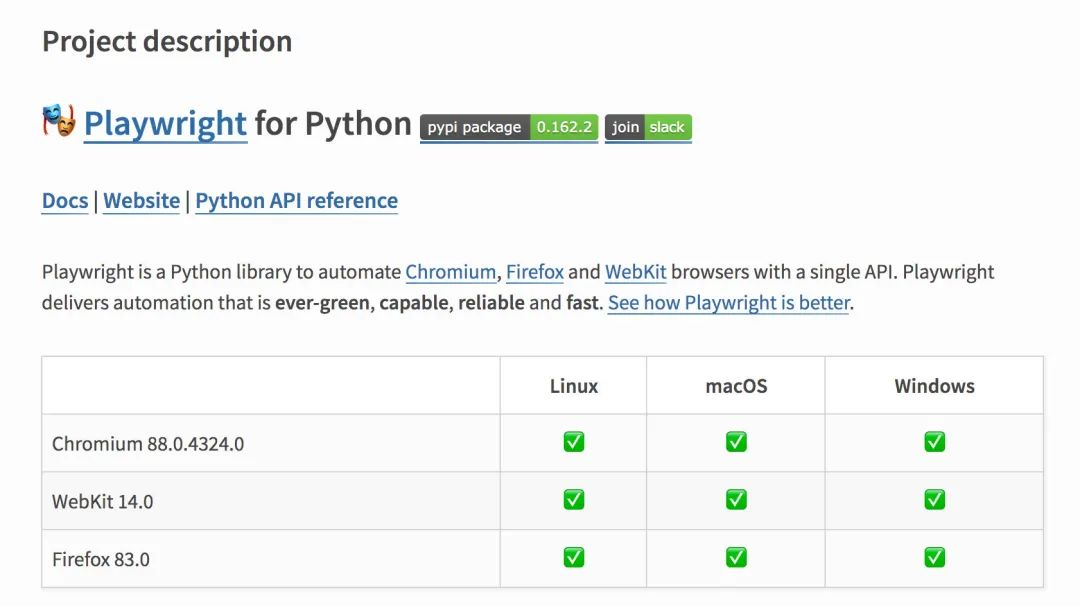 Playwright提供的自动化技术是绿色的、功能强大、可靠且快速,支持Linux、Mac以及Windows操作系统。