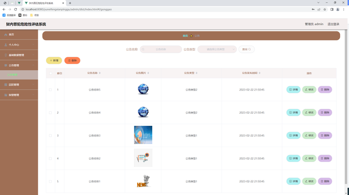图5.3 公告信息管理页面