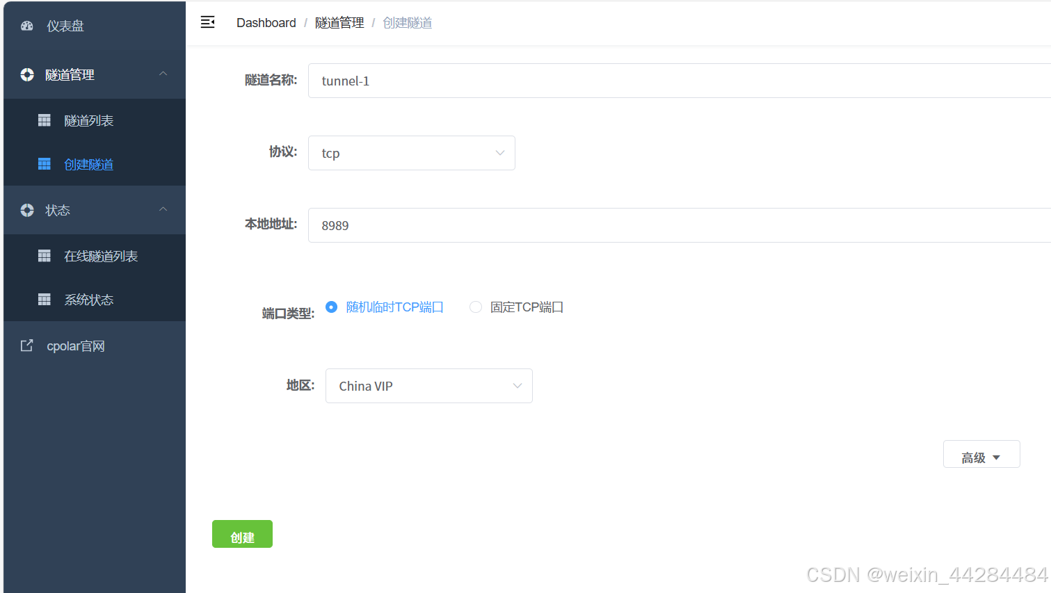 安装后点击桌面的Cpolar Web UI。创建隧道: