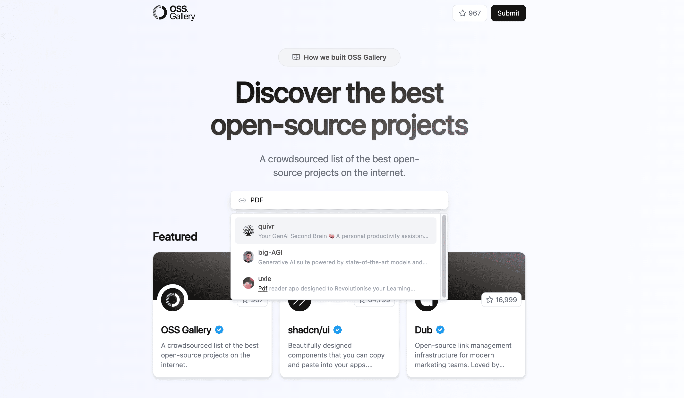 互联网上最佳开源项目的众包列表。搜索的功能还是挺不错的,可以发现一些有趣的开源项目。