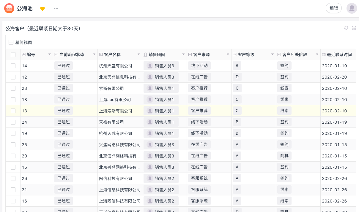 通过线索公海池自动回收的机制,可以避免客户因过长时间等待,无人对接而流失的现象出现;也能改善新老销售客户线索资源分配不均的情况,从而提升了客户线索的跟进效率。