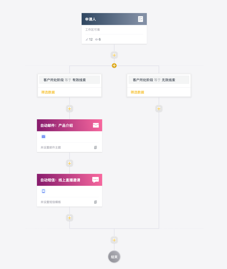 培育的过程也是与客户建立客情关系的关系的过程,我们可以借助合适的工具,通过自动化邮件或者短信的方式,告知客户我们的产品信息、解决方案介绍等等内容: