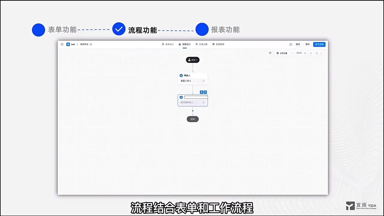 宜搭之所以能如此高效地帮助企业构建应用,离不开其三大核心模块——表单、流程和报表。这三个模块相辅相成,构成了一个完整的业务流程闭环。