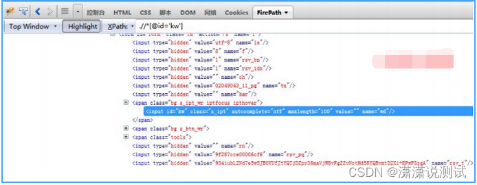 一般来说,自动推荐的XPath表达式定位不够精确。我们大部分时候需要去步骤2中,找出能够识别这个唯一元素的节点信息。刚好上面通过id=kw只能找到一个匹配的元素,说明这个XPath可用,看起来也简洁。实际项目中,可能XPath表达式写得很长,或者附