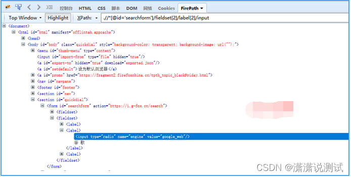 ①FirePath自动推荐该元素的XPath表达式